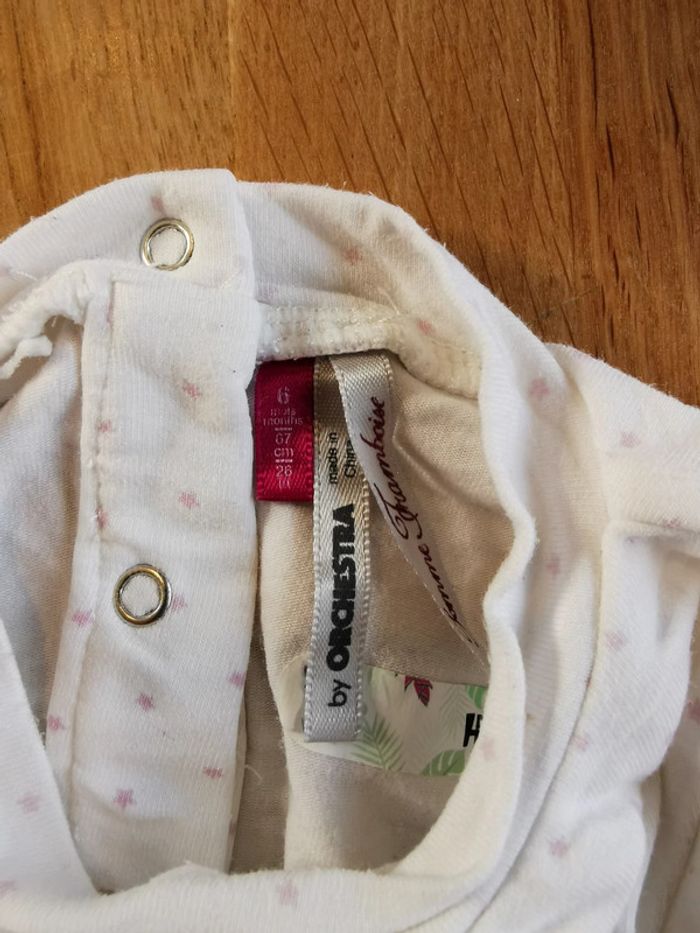 ⚠️⚠️⚠️-50% si vous prenez tous les vêtements de la même taille en vente !!!! Sous pull Orchestra 6 mois Bla'c à étoiles roses Très bon état y compris des pressions Fermeture par pressions dans le dos 51.6% viscose, 42.8% coton, 5.6%elastane Lavé qu'en blanc Étiquette thermocollée dont j'ai effacé l'identité de mon enfant Maison non fumeur, utilisation de produits d'entretien écologiques sans odeurs fortes Emballage soigné de préférence cartonné #la_g_6mois