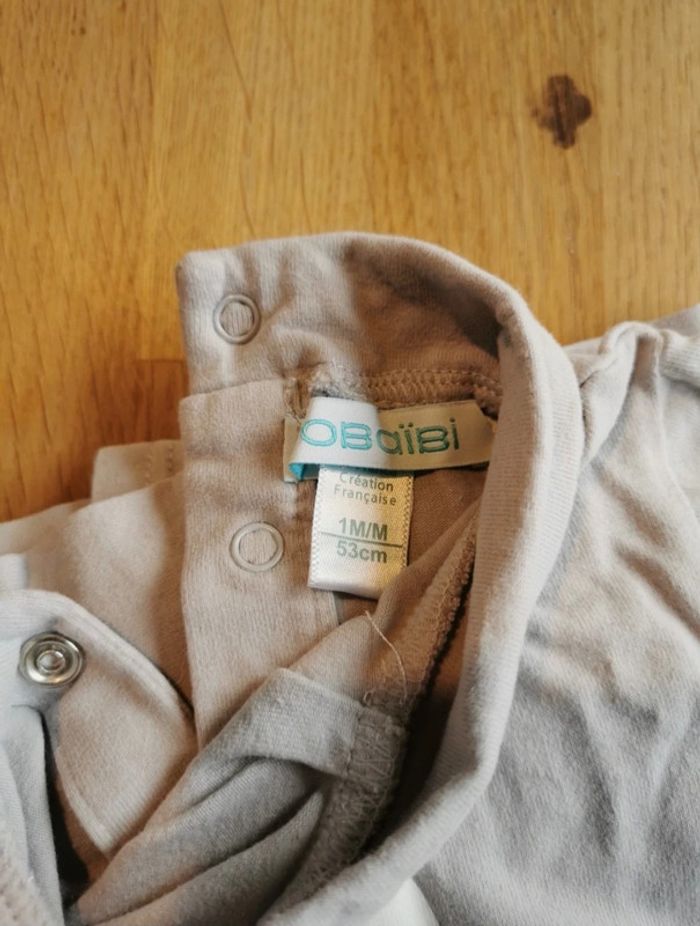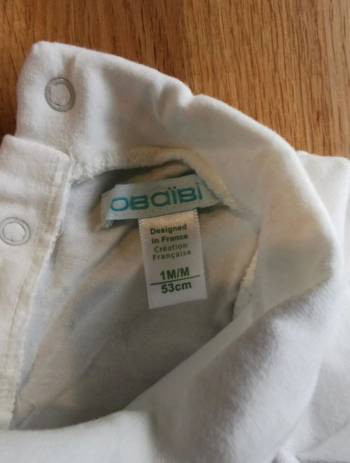 ⚠️⚠️⚠️-50% si vous prenez tous les vêtements de la même taille en vente !!!! Lot 2 t shirts Obaïbi 1 mois blanc (lavé qu'avec du blanc) et un gris, avec dessin sur l'avant en sequins de différentes couleurs Très bon état y compris des pressions Maison non fumeur, utilisation de produits d'entretien écologiques sans odeurs fortes N'hésitez pas à me communiquer vos besoins et à visiter/suivre mon dressing (tri en cours) Envoi soigné et rapide, emballage cartonné privilégié #la_g_1mois