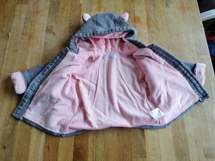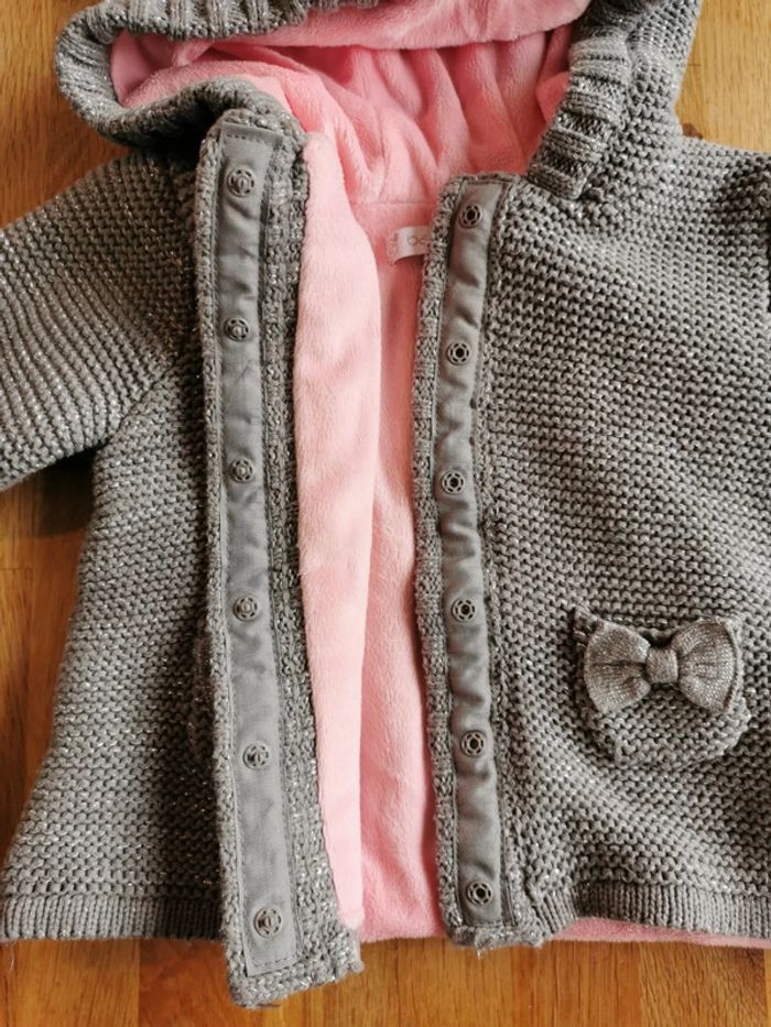 ⚠️⚠️⚠️-50% si vous prenez tous les vêtements de la même taille en vente !!!! Vesta à pression 6 mois Gémo Oreilles sur la capuche Extérieur mailles grises pailletées et intérieur en fausse fourrure rose poils court Veste chaude car doublée, idéale pour la période automne/hiver Pratoque avec ses pressions 55% coton, 37% acrylique, 6% polyester, 2% fibres métalliques Doublure 100% polyester Petit défaut en dessus d'une poche au niveau des mailles (voir photo) Maison non fumeur, utilisation de produits d'entretien écologiques sans odeurs fortes N'hésitez pas à visiter mon dressing Emballage soigné de préférence cartonné #la_g_6mois