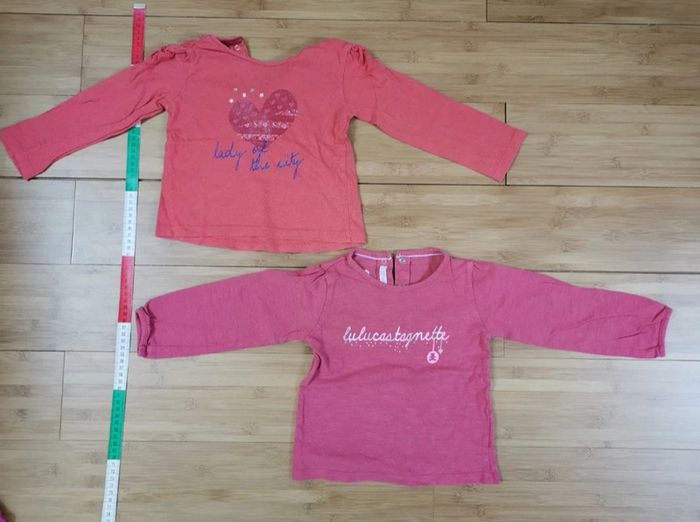 ⚠️⚠️⚠️-50% si vous prenez tous les vêtements de la même taille en vente !!!! Lot de 2 T shirts manches longues Gémo dont un Lulu Castagnette taille 24 mois rose et rouge Un des t shirt possède un coeur pailleté avec des fronces au niveau des épaules Fermeture par pression dans le dos Bon état y compris des pressions Maison non fumeur Étiquette thermocollée dont j'ai effacé l'identité de mon enfant Emballage soigné de préférence cartonné N'hésitez pas à visiter mon dressing #la_g_24mois