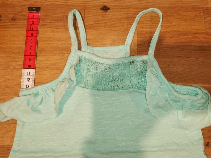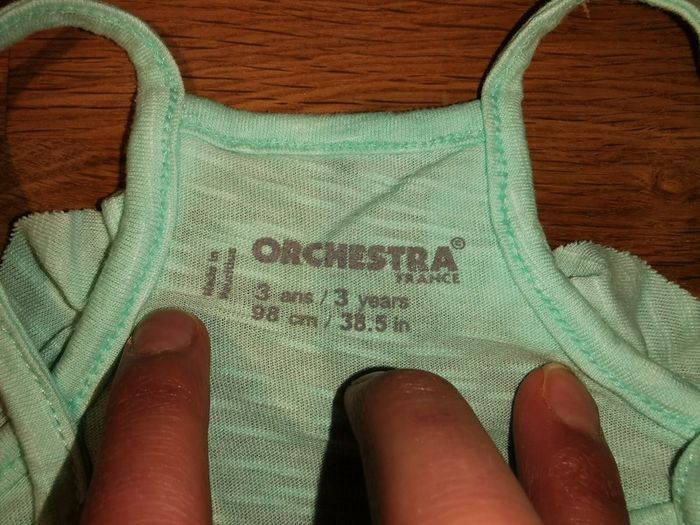 ⚠️⚠️⚠️-50% si vous prenez tous les vêtements de la même taille en vente !!!! T shirt bretelle Orchestra 3 ans, vert d'eau ajouré sur une partie du buste avec volants sur l'avant et l'arrière T shirt 60% coton, 40%polyester Empiècement 100% polyester Très bon état Maison non fumeur, utilisation de produits d'entretien écologiques sans odeurs fortes N'hésitez pas à visiter mon dressing #la_g_3ans