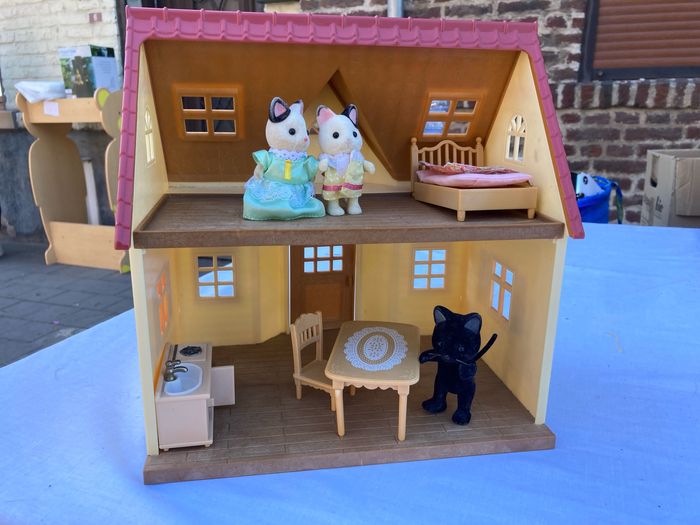 Maison et quelques accessoires ainsi que des personnages Sylavnian Families. Bon état général