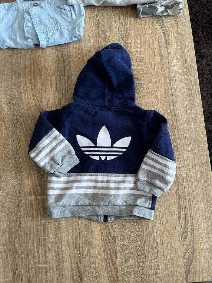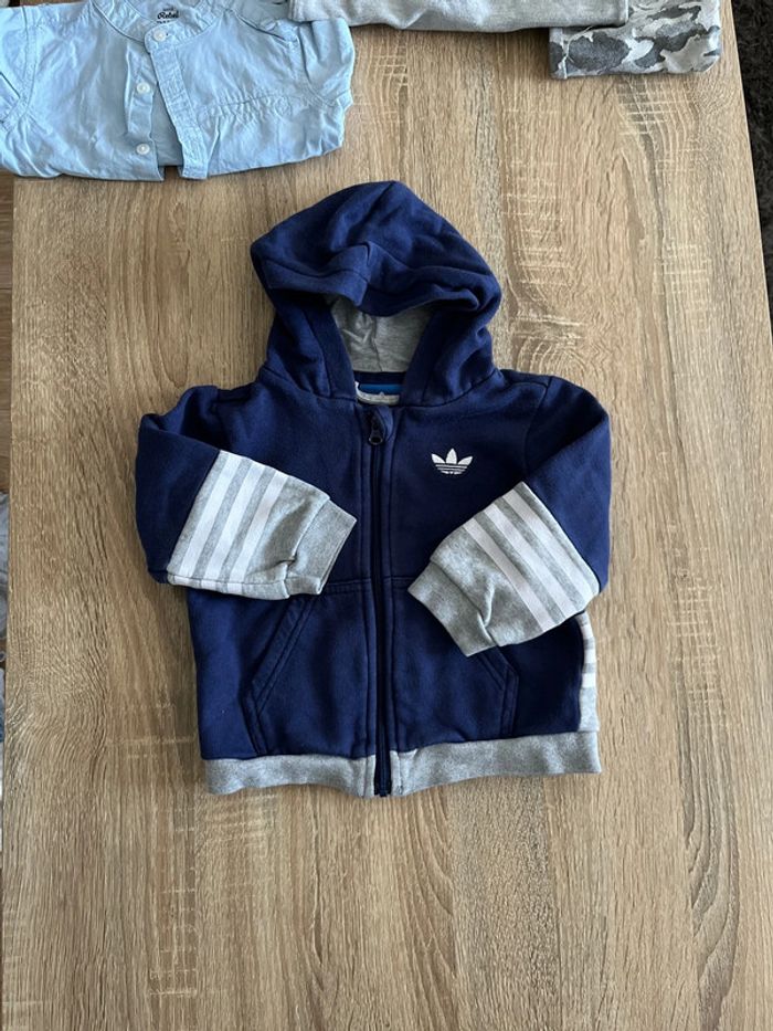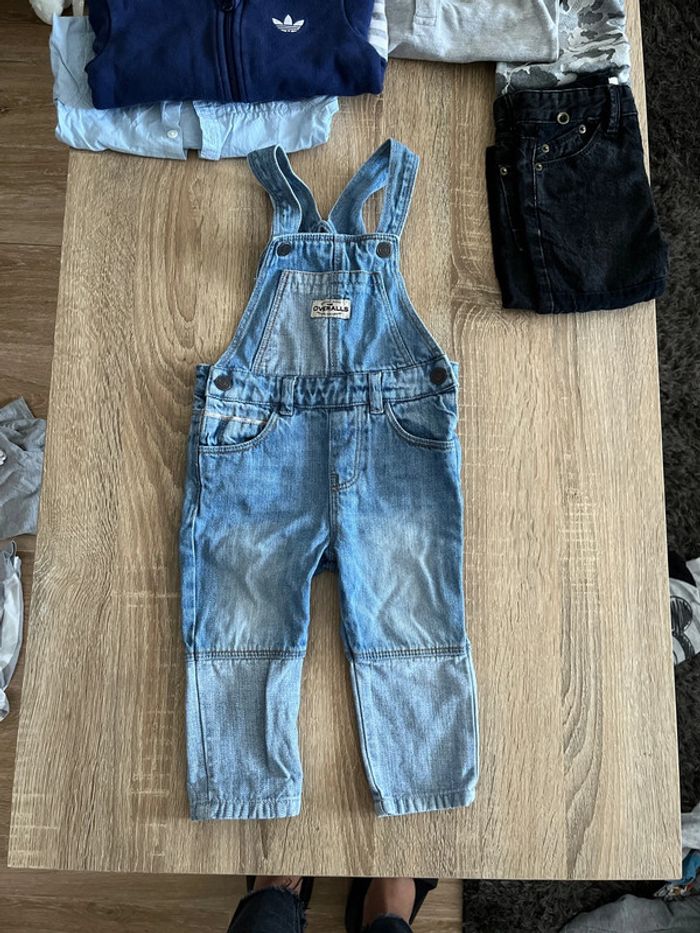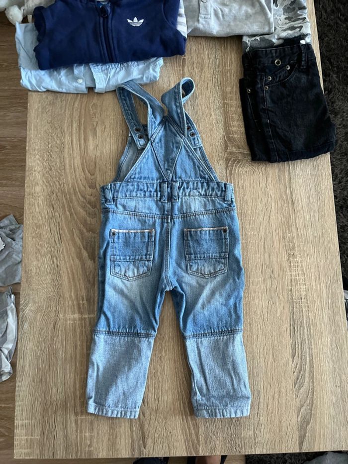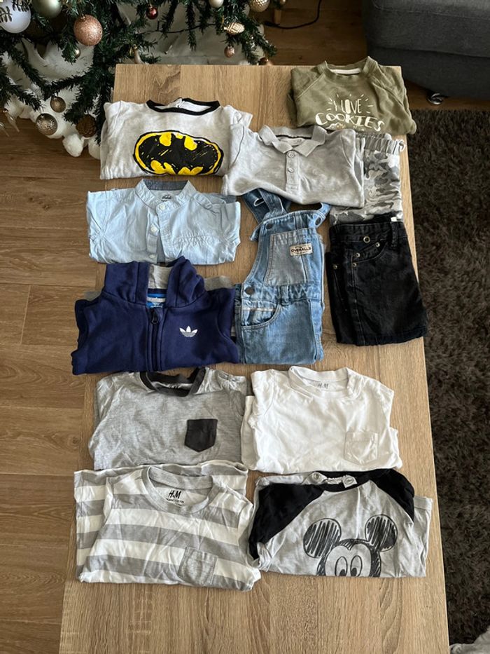 Lot en très bon état taille 9-12 mois . 1 salopette Zara 1 polo manche longue Zara Un jean noir effet délavé Zara 3 t-shirt manche longue H&M Un pull Kiabi Une veste adidas 1 chemise bleu ciel Un pyjama Batman Un t-shirt manche longue Mickey Un pantalon style millitaire