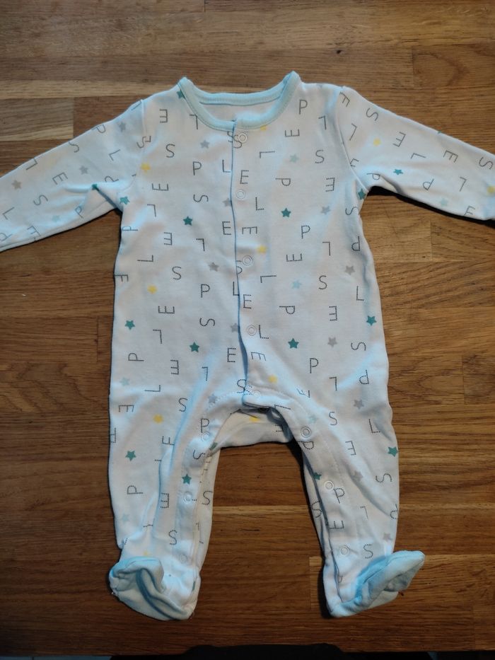 Pyjama en très bon état. Ouverture sur le devant et entre les jambes pour faciliter le changement de la couche.