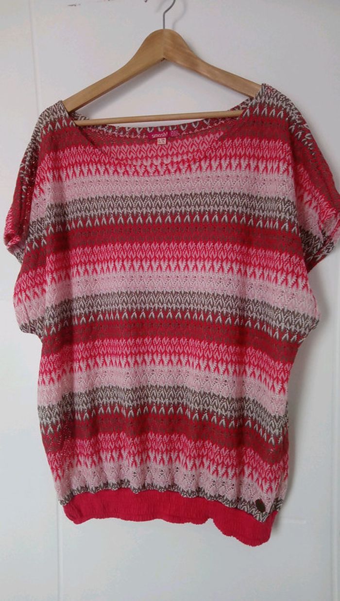 Tee shirt léger, ajouré, dans les tons roses, coupe chauve souris, taille élastique, manches courtes, convient pour taille 42/44 #cyboulette44femme