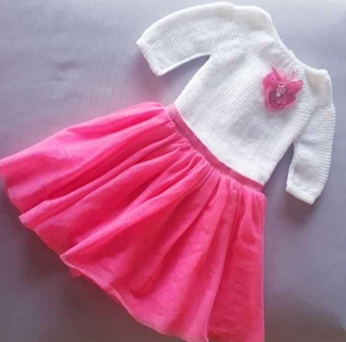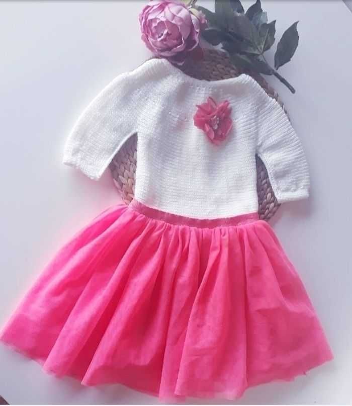 Vêtement robe tulle princesse pour cérémonie baptême mariage fait main au tricot pour fille 3 ans rose - photo numéro 1