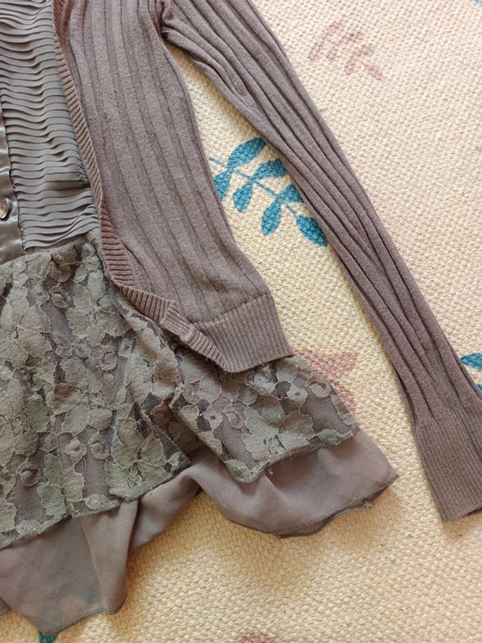 Pull léger marron clair dentelle 38 (contrairement à ce qui est écrit taille chinoise) en bon état général, voir photos. #38_djlaurita