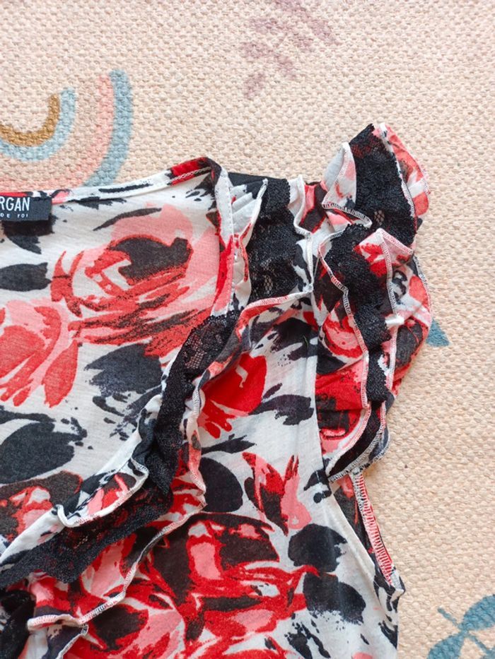 Haut Morgan froufrou rose rouge noir S - photo numéro 5