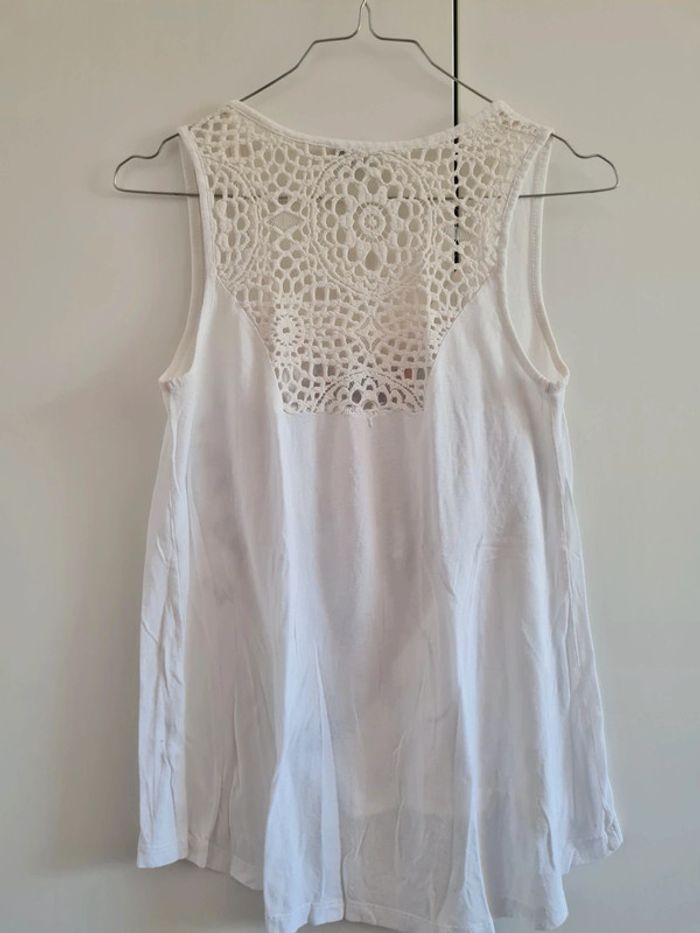 Débardeur bonprix, état satisfaisant, déjà porté pas mal de fois mais peut encore faire une heureuse. Il manque quelques strass et bouloches au dos. Plus long au dos que devant. Taille 36. #36_djlaurita #s_djlaurita 👋n'hésitez pas à cliquer sur le # en prenant soin de supprimer tous vos filtres de recherches, vous tomberez sur tous les vêtements de cette taille là dans ma vitrine.