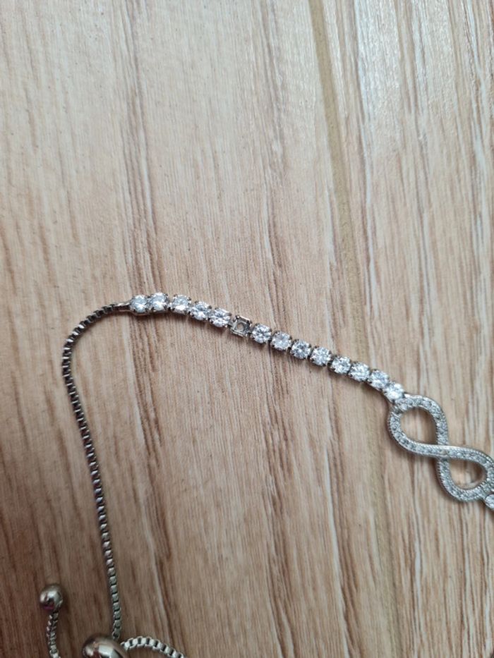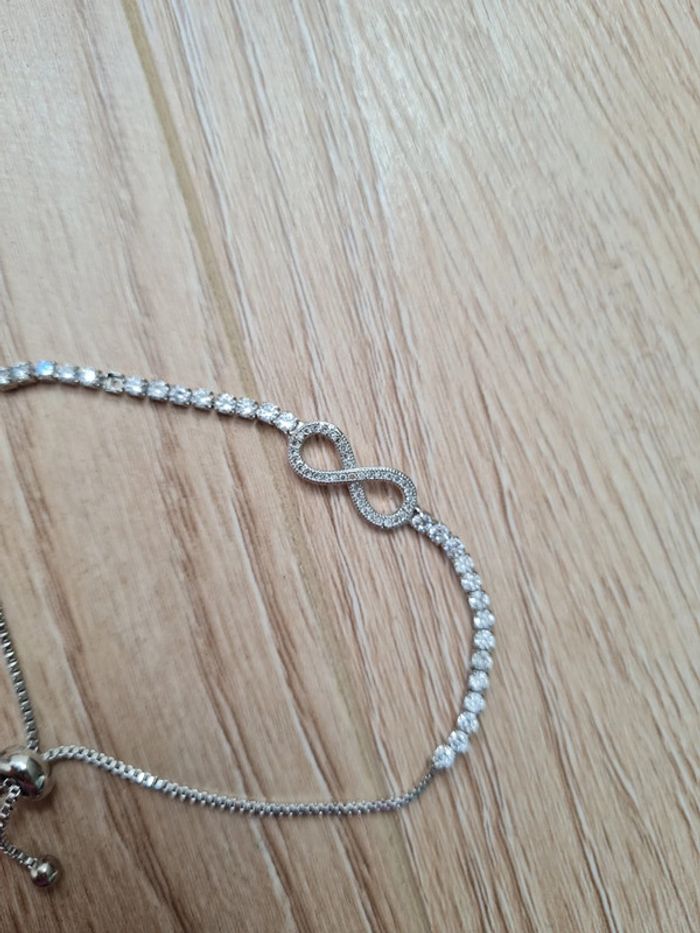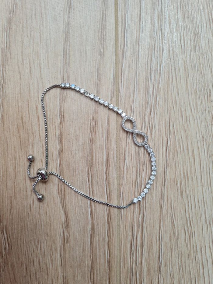 Bracelet fantaisie symbole infini, en très bon état mais il manque un strass!! Voir photos. Réglable