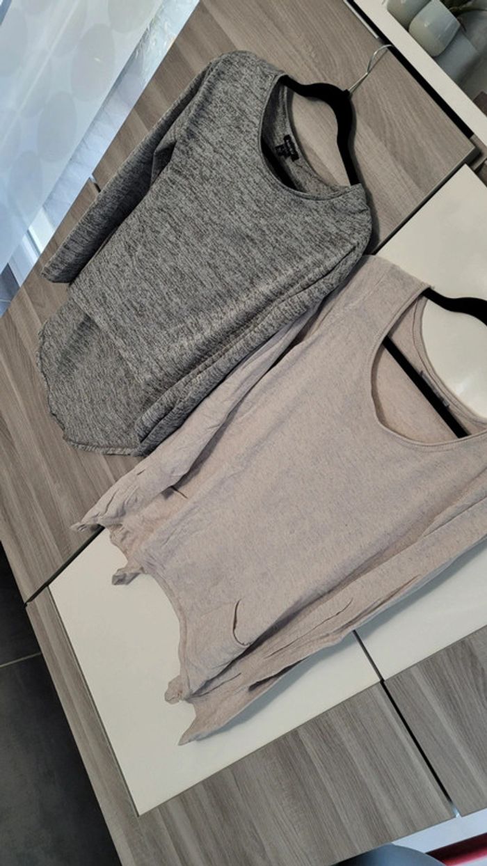 Lot de 2 pulls asymétriques amisu 3 suisse taille s Beige gris