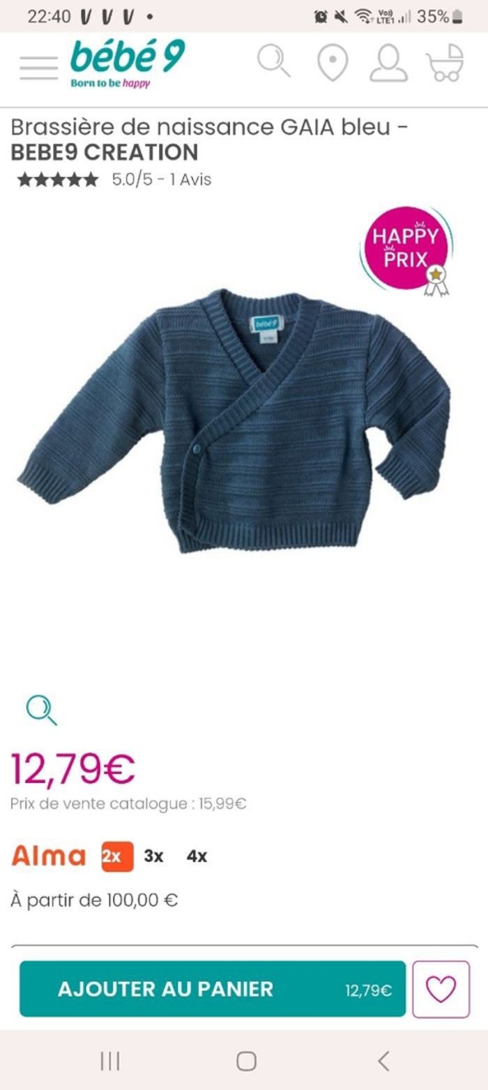 Gilet de marque Bébé 9 0/3mois à vendre jamais porté