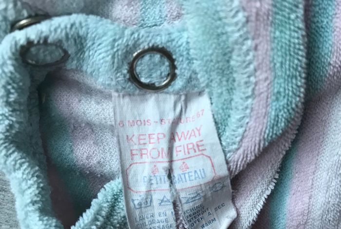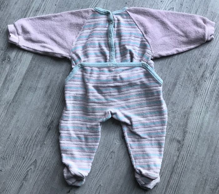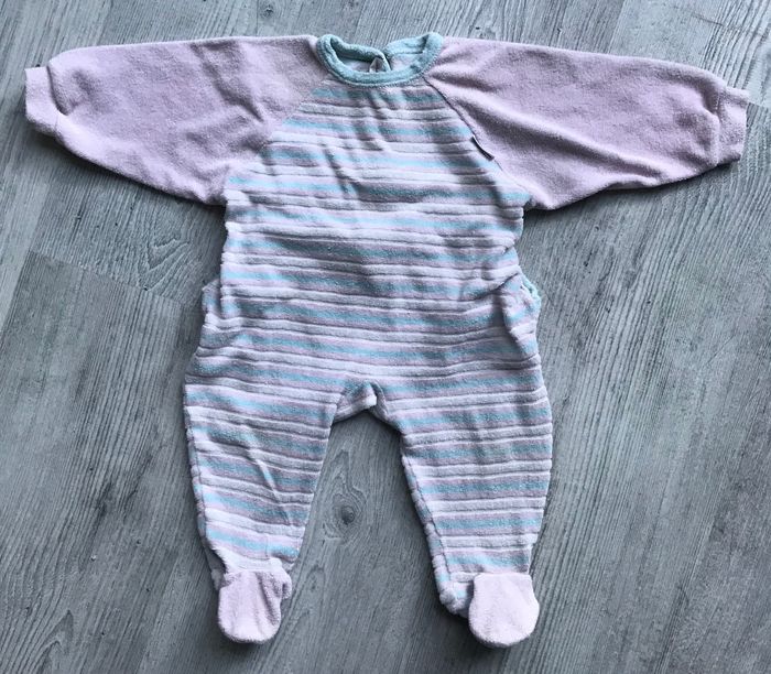 pyjama une pièce en éponge de la marque Petit Bateau (ancien modèle) taille 6 mois trace d’utilisation occasion, bon état