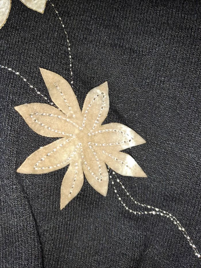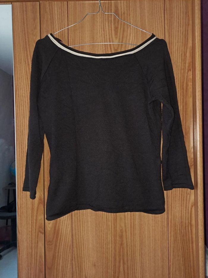 Haut manches longues Marron avec fleurs beiges Manches 3/4 Porté mais en super état Taille L mais qui correspond plutôt à un 38/40