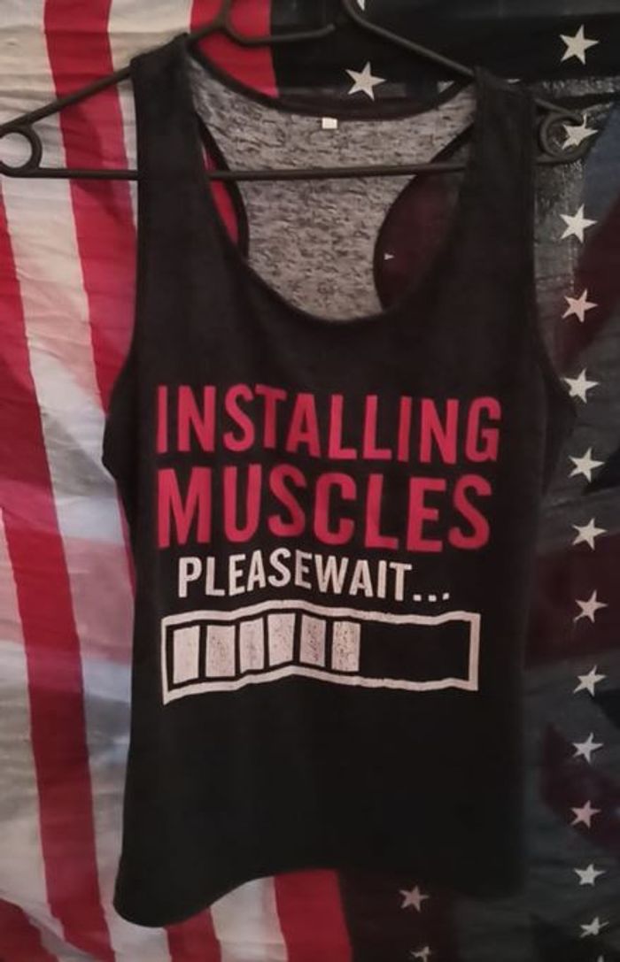Porté 2 fois Débardeur noir avec inscription Taille indiquée XL mais plutôt M/L