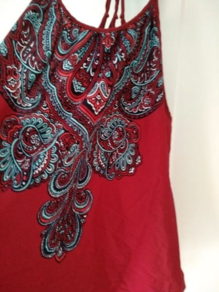 Lavé mais jamais porté (trop petit) JENNYFER Haut bordeaux avec motifs ethniques, joli jeu de bretelles Taille M #gaby0075TailleS #gaby0075TailleM