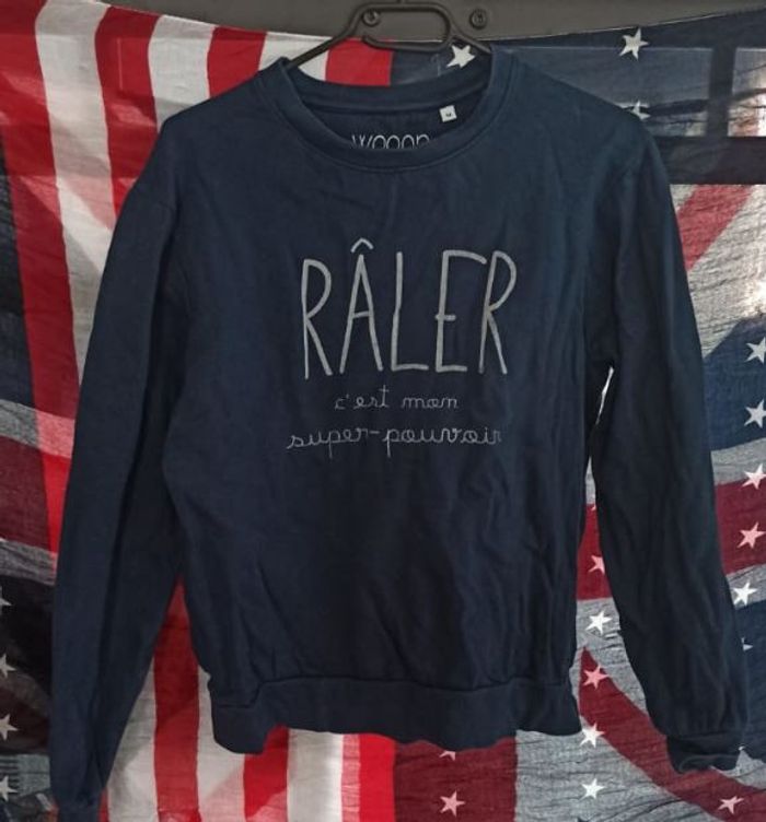 Porté mais en bon état Sweat avec inscription - Wooop Art Shop Bleu foncé Taille M Acheté 49.90 sur le site Whooop #gaby0075TailleM