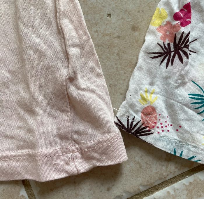 1 t-shirt manches longues marque Kiabi état correct : quelques coutures un peu défaites cf photos 1 t-shirt sans manches marque tissaia en très bon état Le prénom de ma fille est inscrit sur les vêtements (tampon C-Taki spécial textile sans danger et part au lavage) #t9mois_aurelie8921