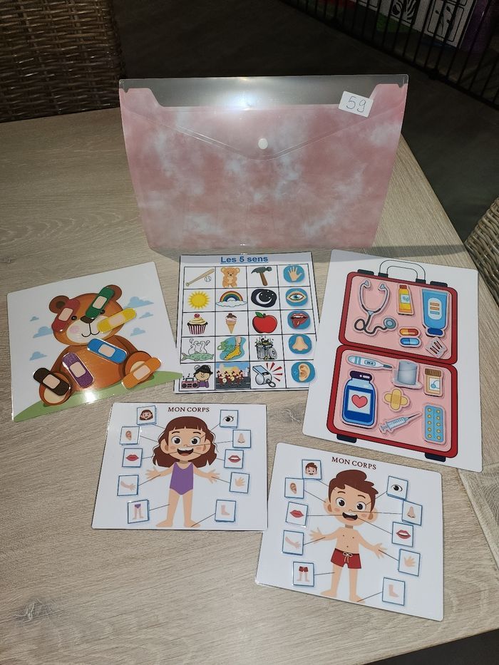 Jeux plastifiés et scratchés façon montessori