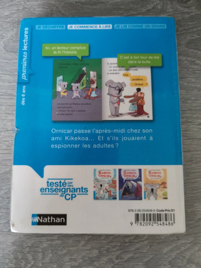 Livre Nathan , Collection Premières lectures, pour un enfant dès 6 ans. Kikekoa et Ornicar "On est de vrais espions" En bon voire très bon état. La couverture avait été protégée avec un papier exprès. Elle est abîmée. Le reste est en très bon état Réduction sur les lots