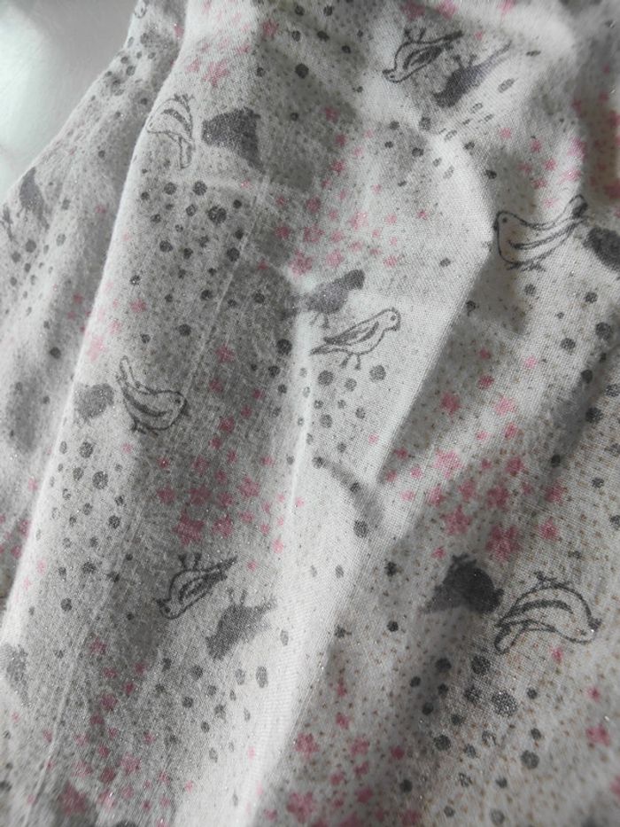 Blouse a manches courtes motif étoile et oiseaux pailleté, légèrement jauni au col #didieliamdouzemois