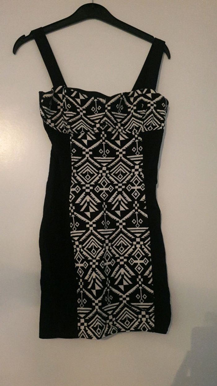 Robe moulante noire h&m avec inscription ethnique devant blanche taille 38
