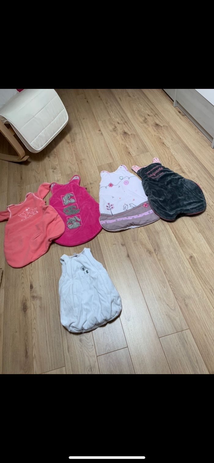 Gigoteuse en bon état. Le blanche est petit idéal pour la naissance. Je peux faire des ventes à l’unité. 20€ les 5 ou 6€ l’unité.