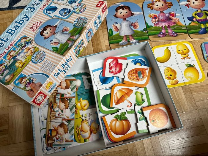 Jeux complet Boîte intacte 3 jeux à l’intérieur puzzle - construire des personnages - construire un carré de couleur et d’images - construire une suite logique État neuf