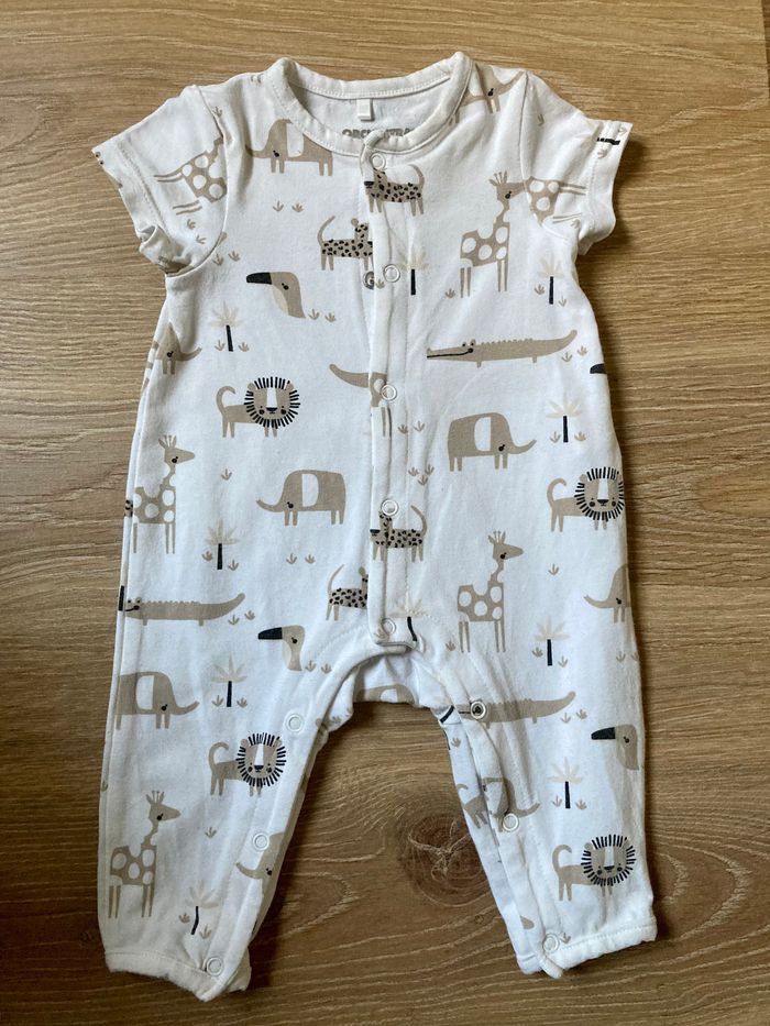 Combi manches courtes blanc motif jungle/savane marron