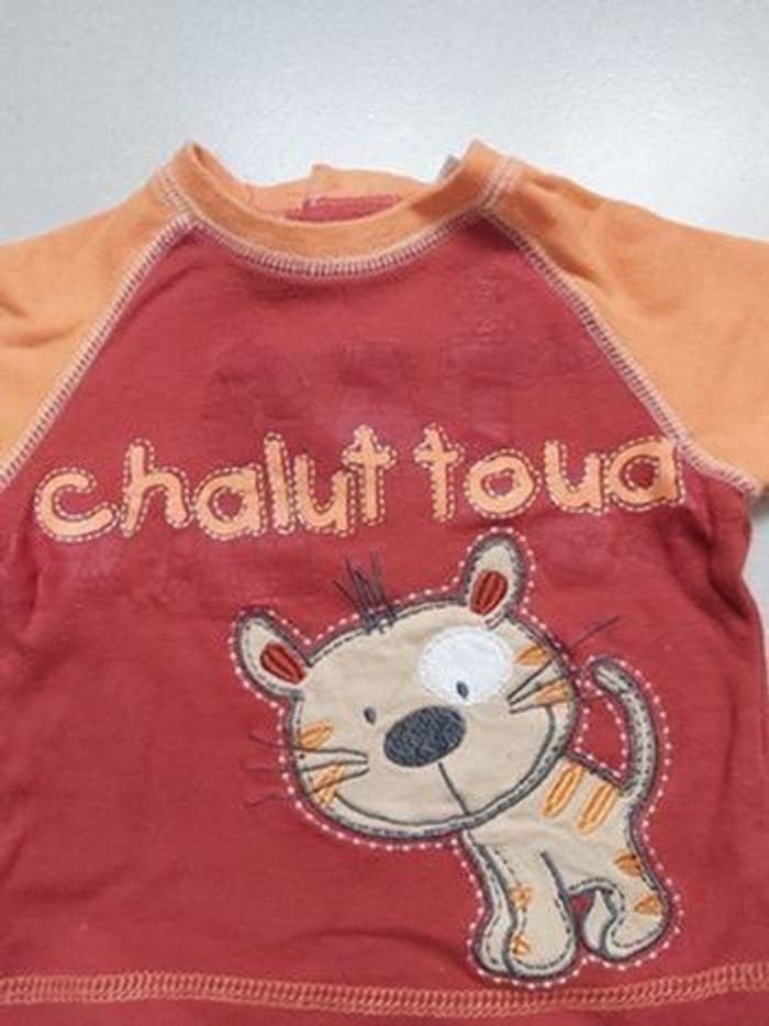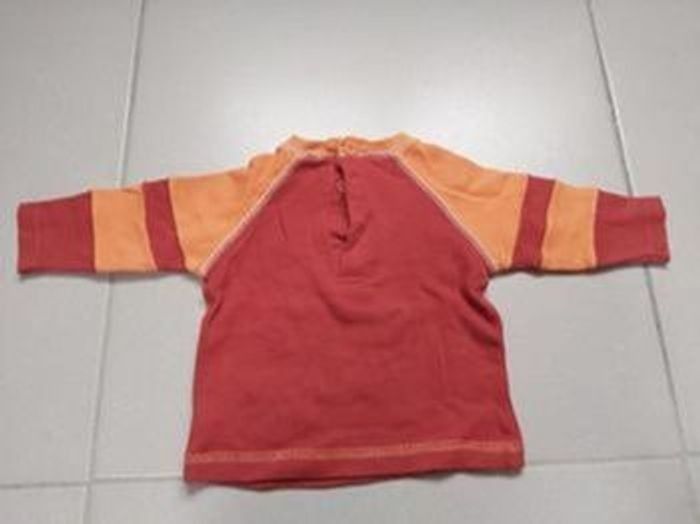 Tshirt manche longue Taille 6 mois Couleur rouge et orange Fermeture bouton dans le dos