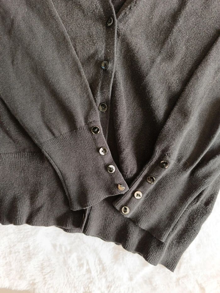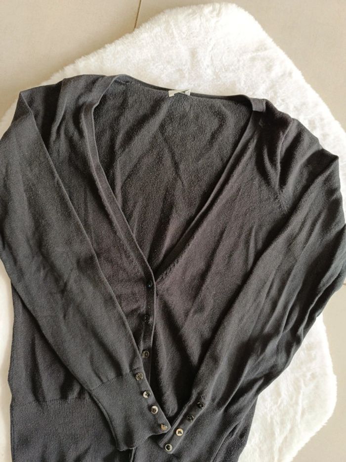 Gilet noir femme taille 1 marque camaïeu . Porté mais reste en bon état. En revanche a peinture sur les boutons des manches est en partie enlevée et un des boutons est cassé. #femme36 #camaieu36 #giletfemme #giletfemme36