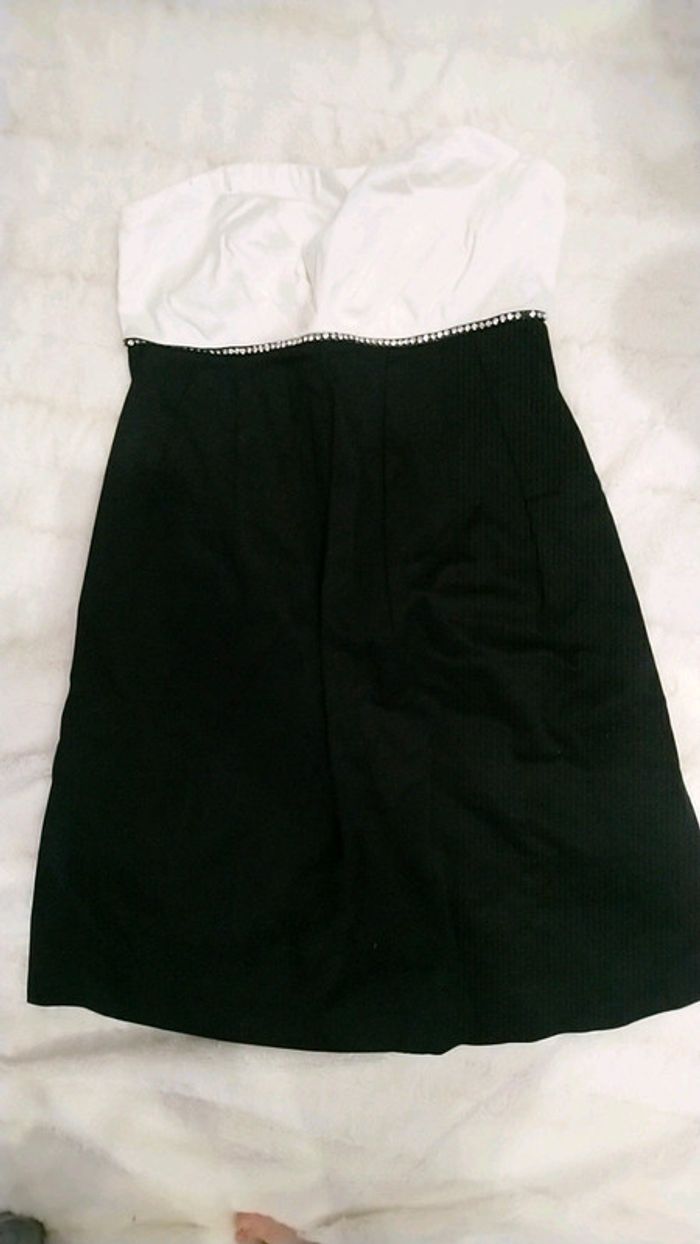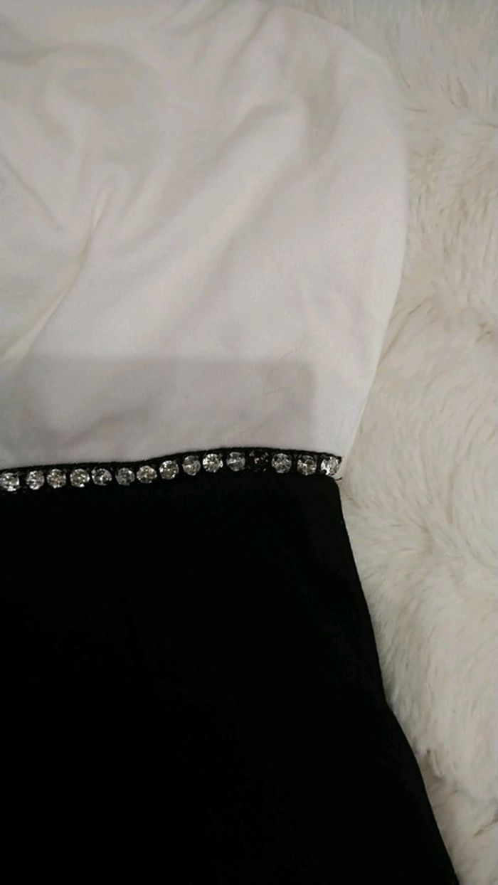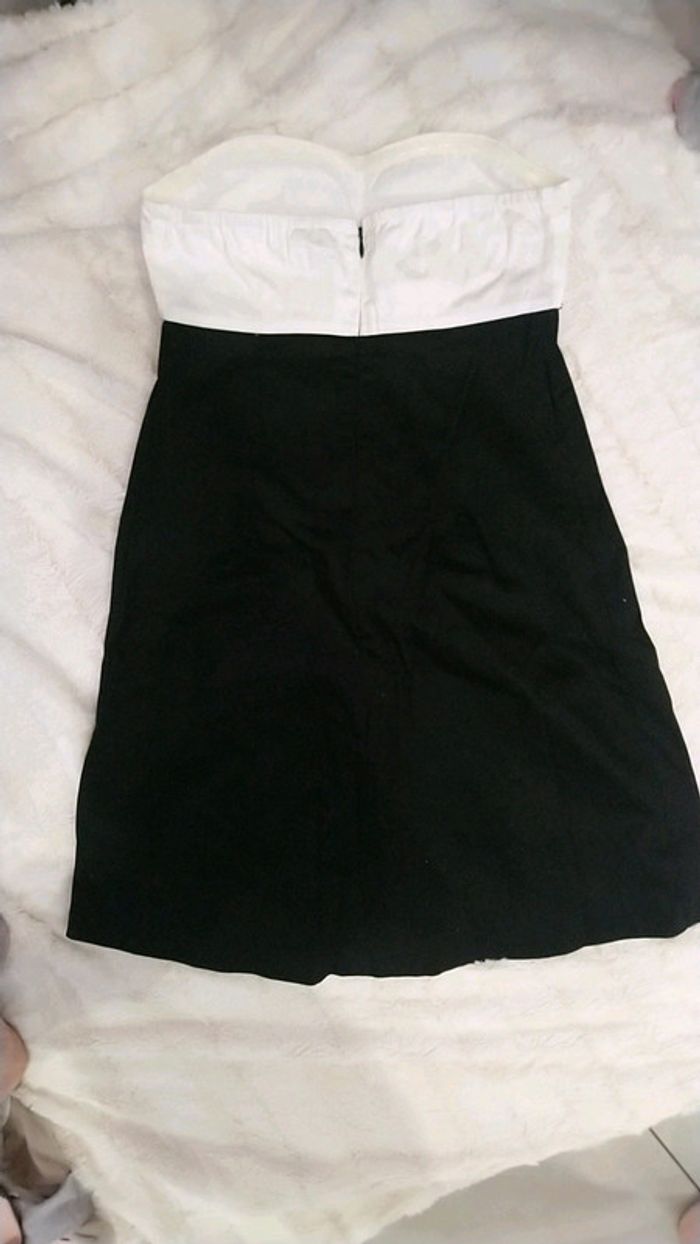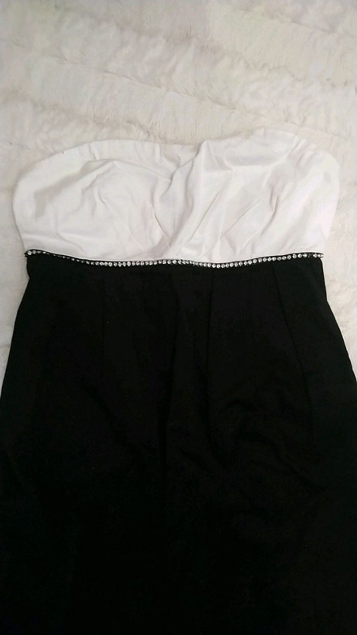 Robe bustier noire et blanche en tres bon état. Seul défaut, manque 1 petit strass côté G (cf photo) et un côté D (mais sous le bras mais ne se voit pas) Très jolie portée