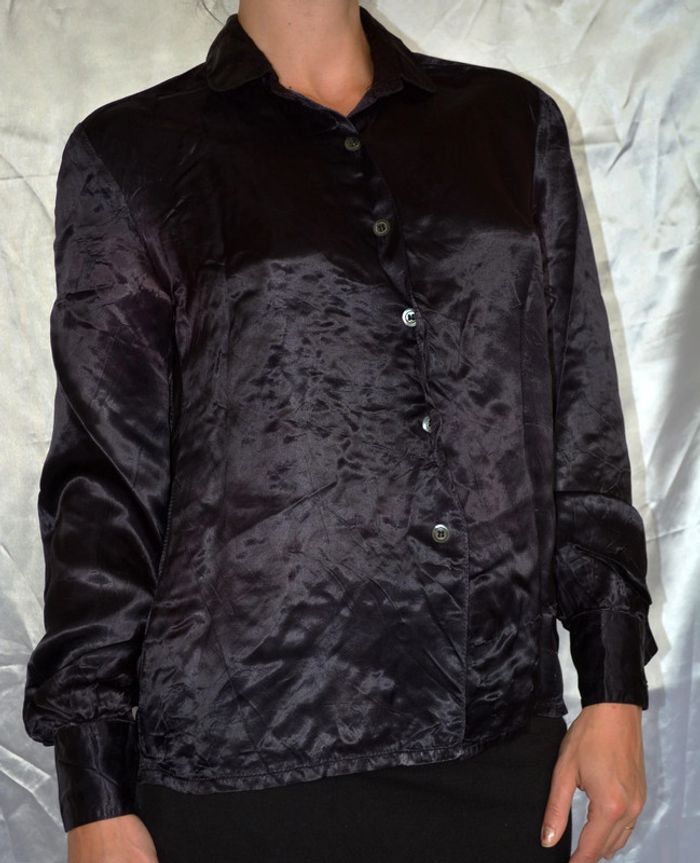 chemisier satiné noir taille M - photo numéro 1