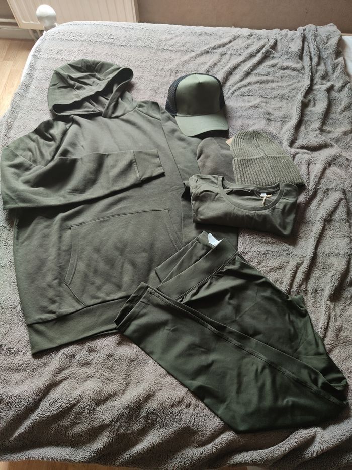 Ensemble sweat+legging+ teeshirt+ bonnet+casquette) au choix casquette et bonnet parmi (3 modèles casquette et 2 bonnet) Prix 40€ Photo supplémentaire sur demande.