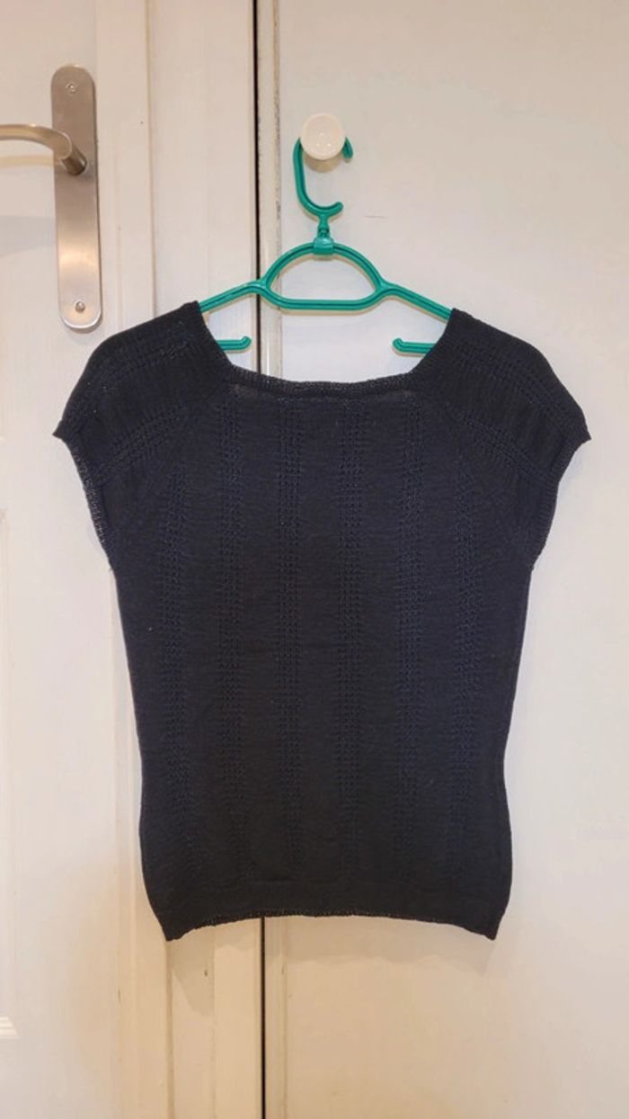 Pull fin maille ajourée sans manche col carré - photo numéro 2