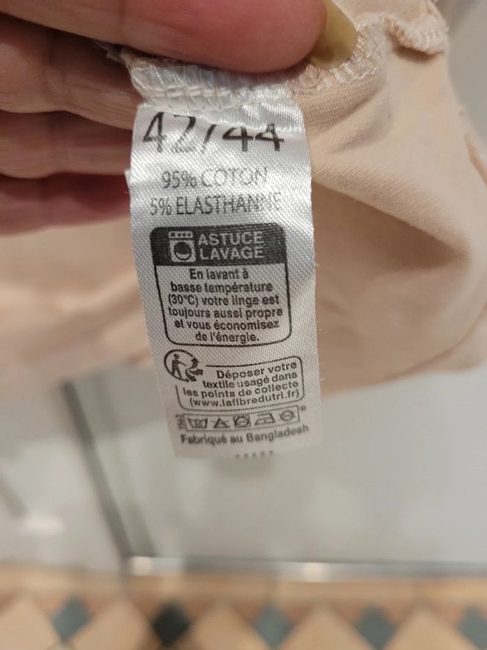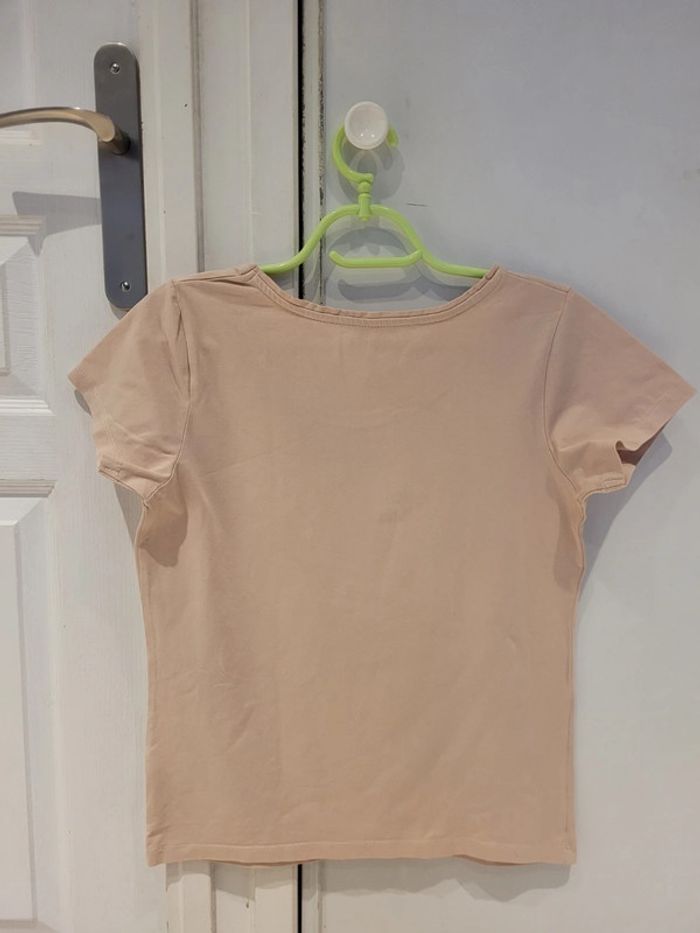 T-shirt manches courtes 95% coton nude rose pâle abricot - photo numéro 3
