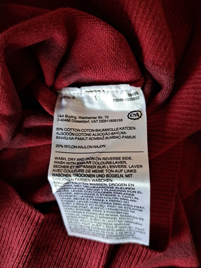 Neuf avec étiquette pull fin bordeaux à fine rayures taille xs belle matière coton et nylon Envoi rapide et soigné