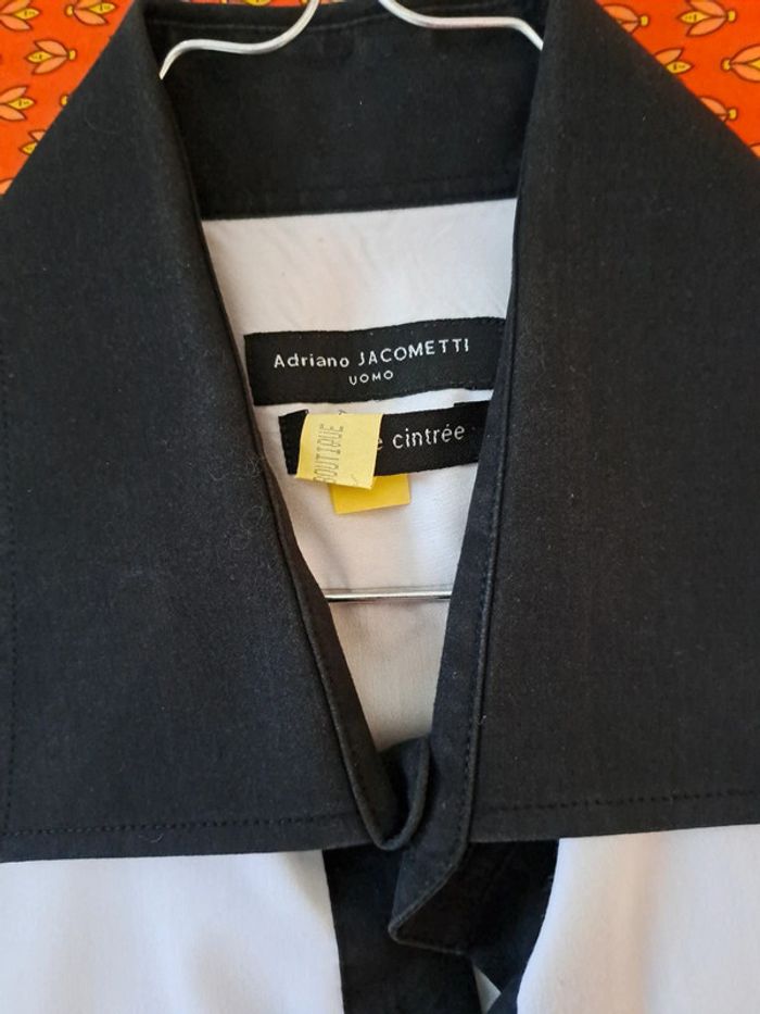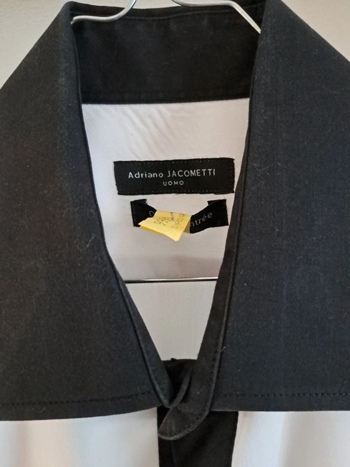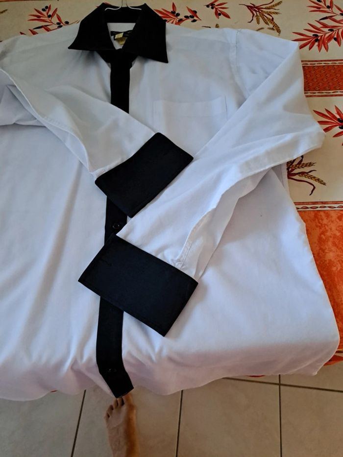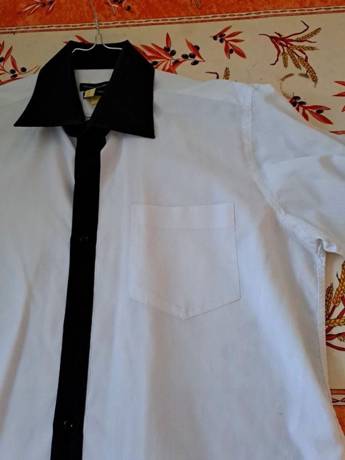 belle chemise blanche avec contraste noir En très bon état, lavée repassée car sort du pressing Envoi rapide et soigné D'autres chemises en vente, remise sur les lots. #isacorbashomme