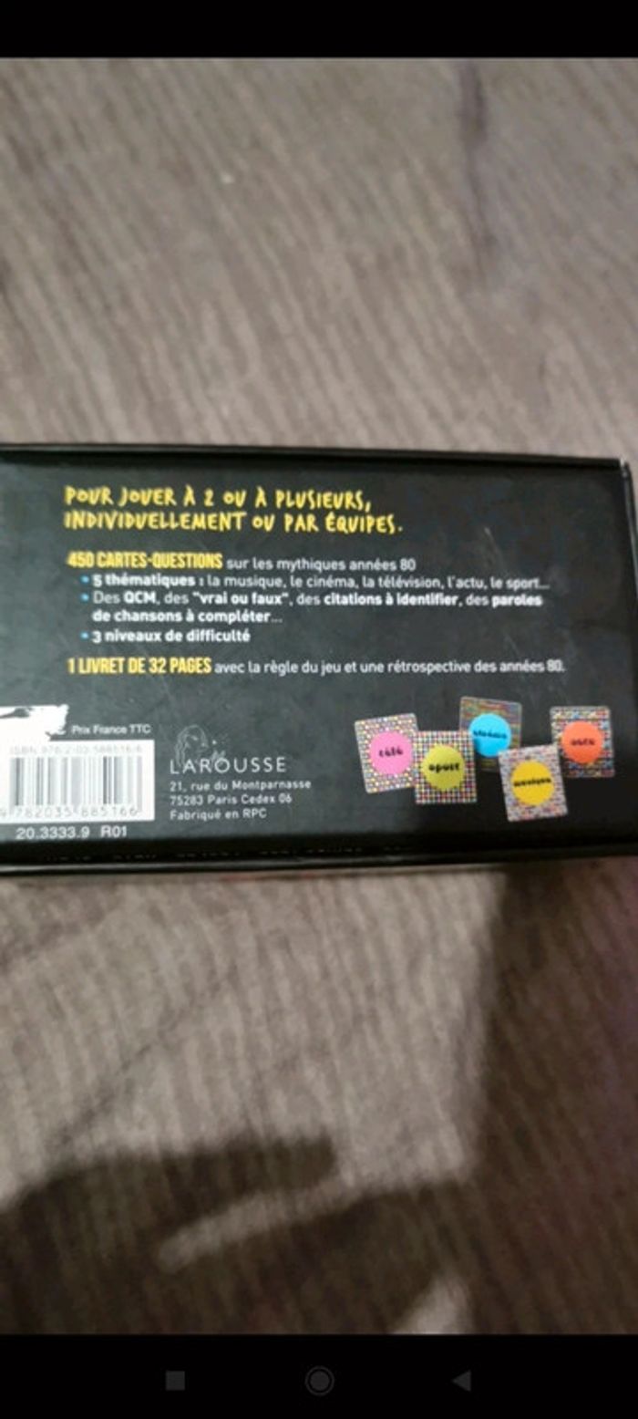 Jeux spéciale année 80 pour jouer a plusieurs en famille ou entre amis .plusieurs catégorie de carte rigolade assurée
