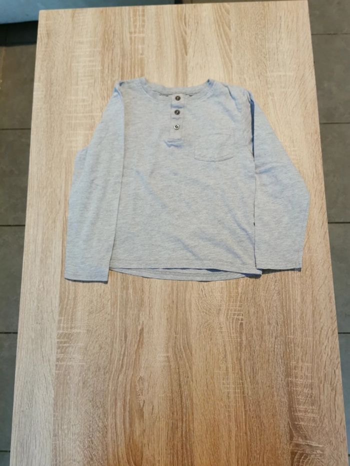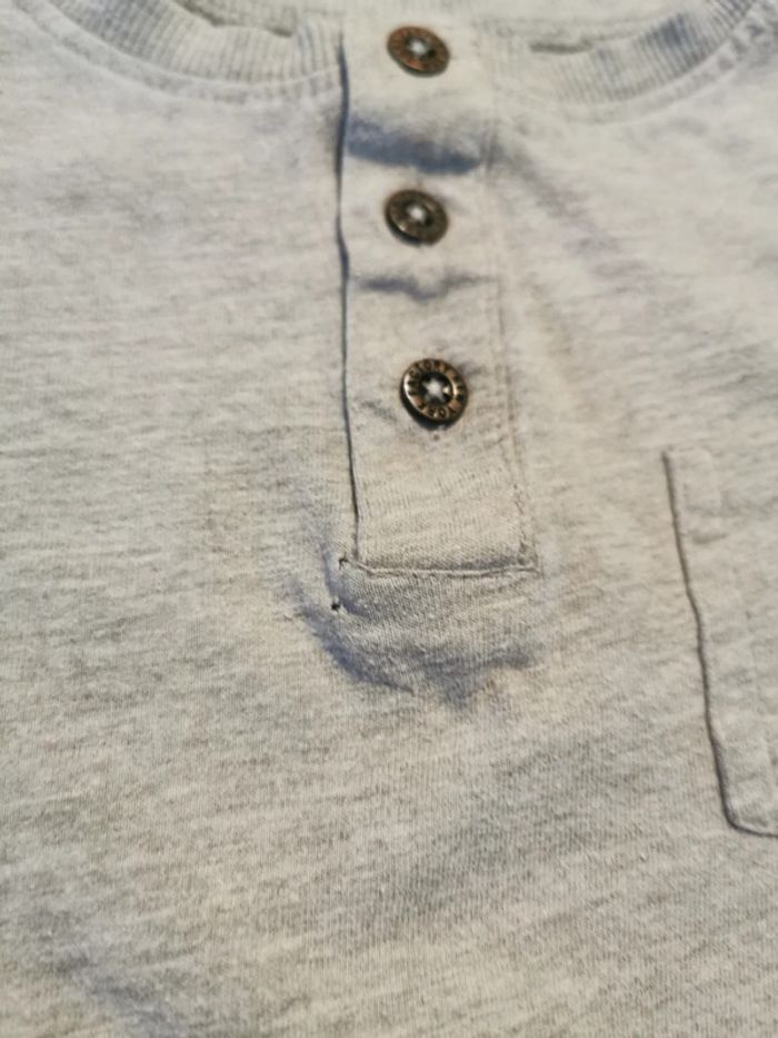 Tee-shirt manche longue petite poche sur le devant. 2petit teou a peine visible sous les bouton