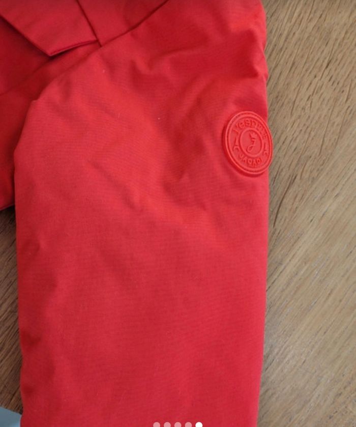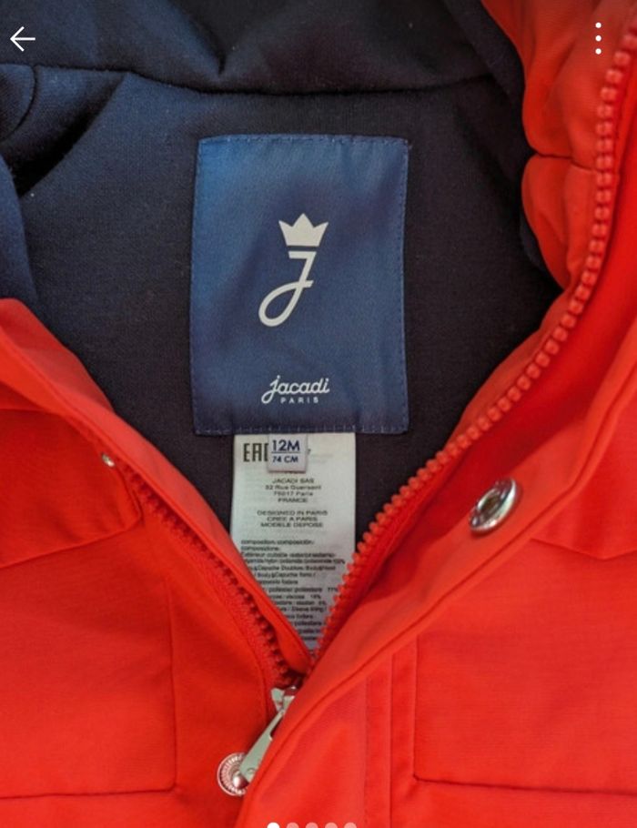 Parka Jacadi neuve rouge déperlante chaude Intérieure polaire Extérieure imperméable à l'eau Bouton acier avec logo + sur la manche Jamais portée 9-12mois (72cm)
