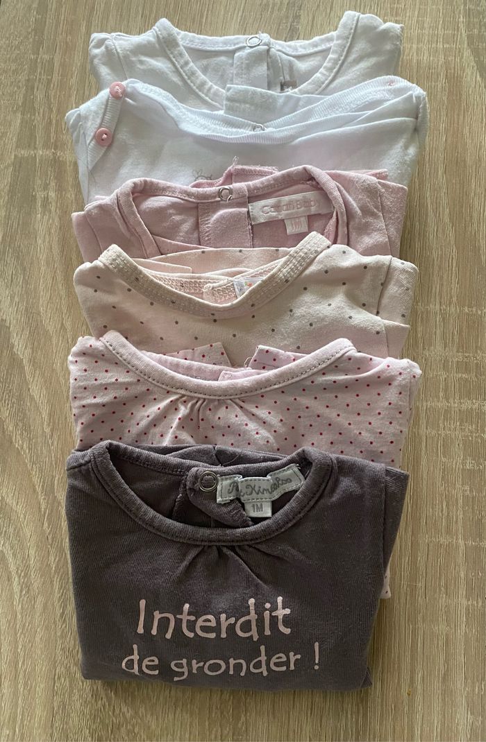 Lot de 6 T-shirt taille 1 mois En bon état Plusieurs marques ( canari baby / orchestra / kitchoun )