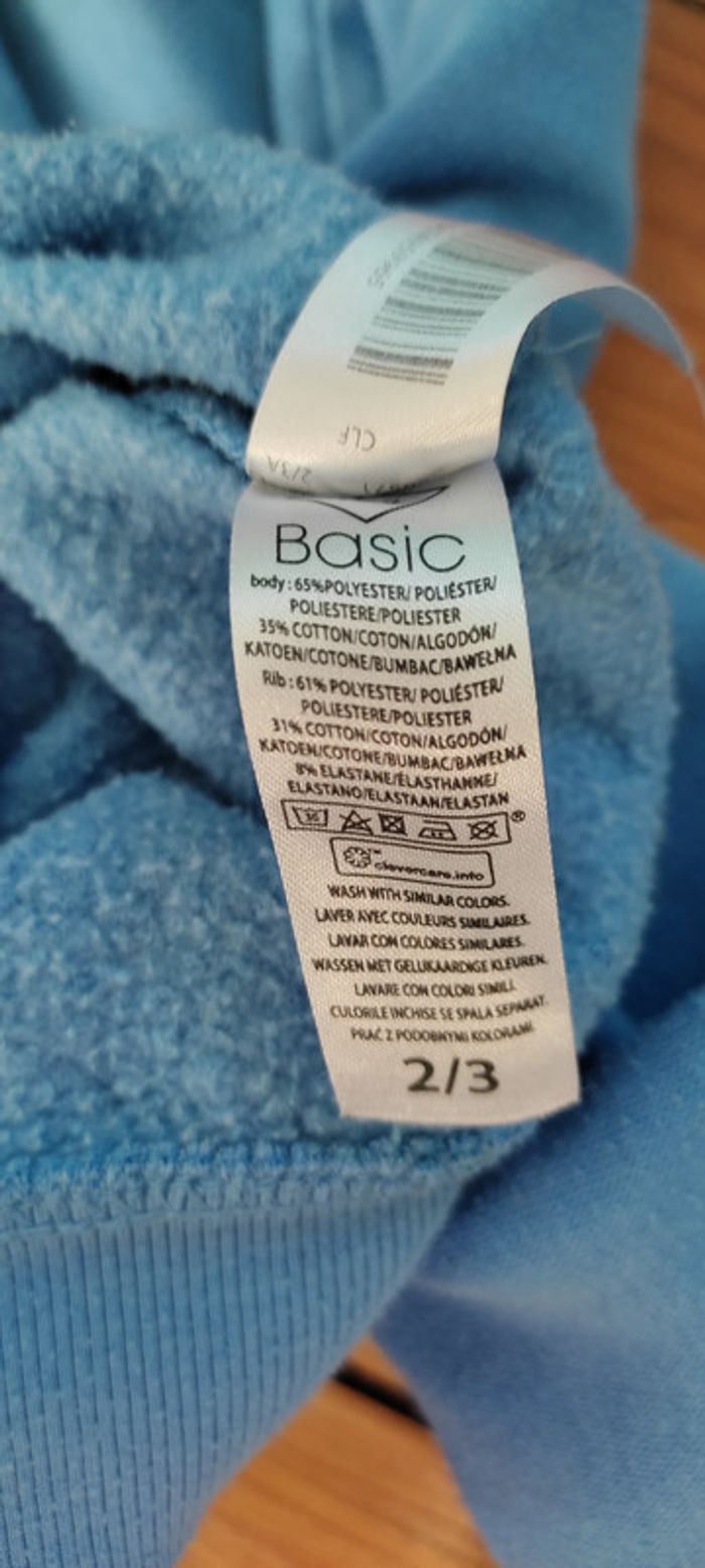 Sweat capuche Tex 2-3 ans bleu , polyester et coton .