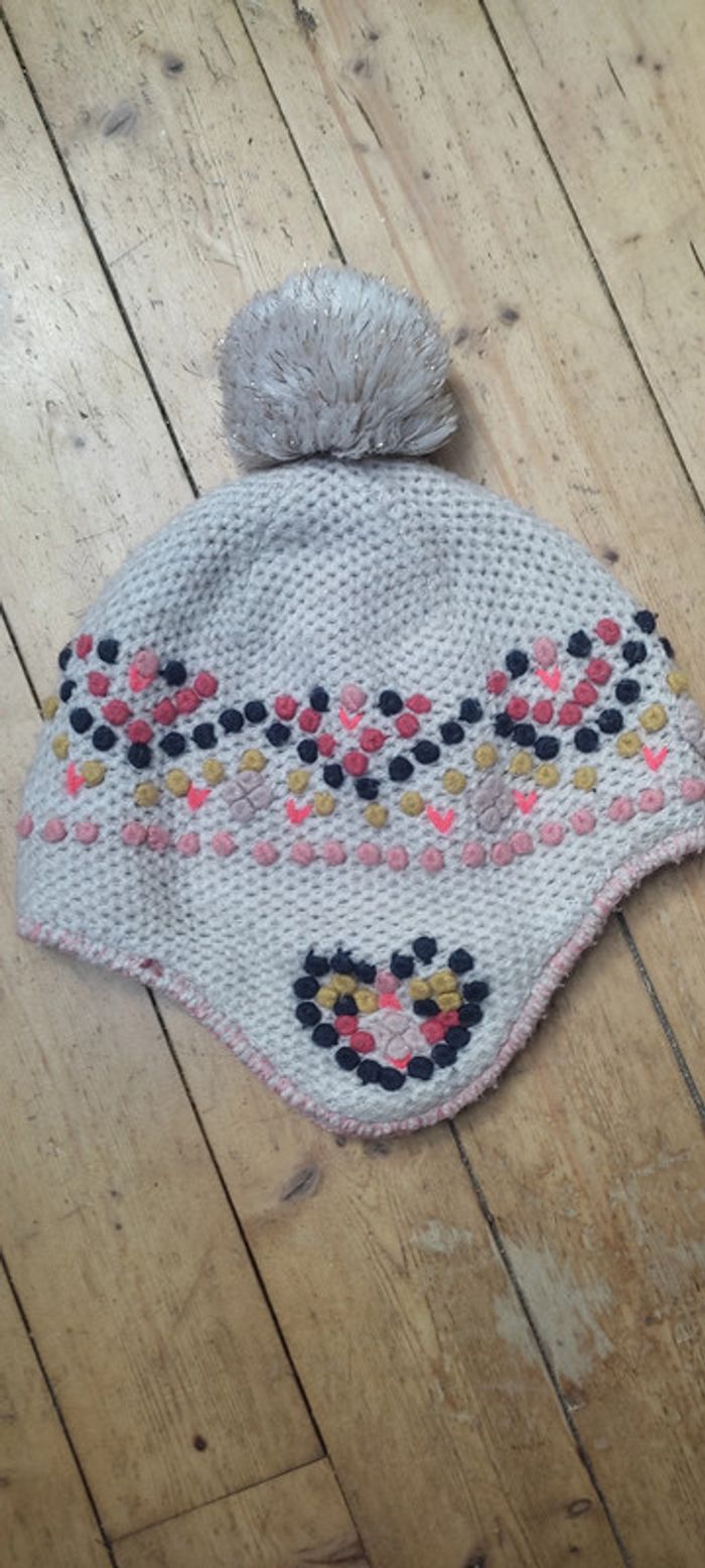 Bonnet fille DPAM 6-8 ans , bien chaud qui recouvre les oreilles , intérieur polaire