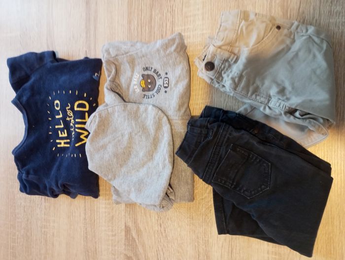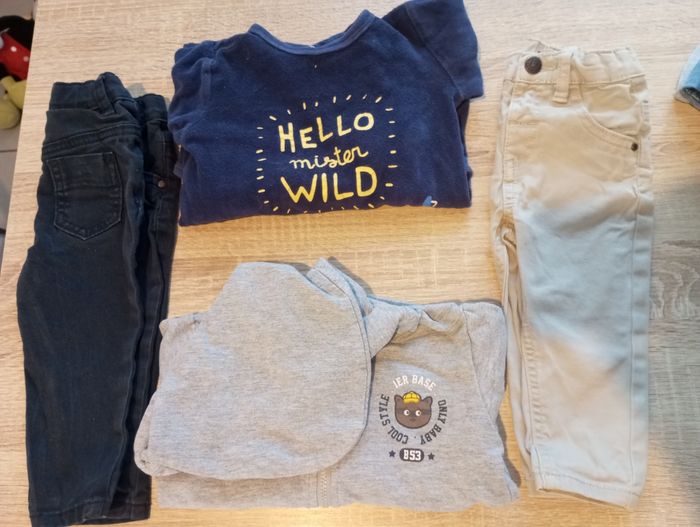 2 jeans 1 pyjamas une pièce 1 veste a capuche 12 mois