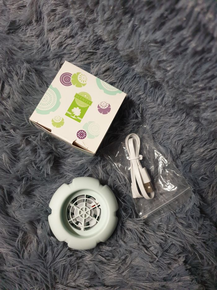 Idéal au bureau, dans la voiture ou dans n’importe quel lieu où se trouve une prise USB. Il s’utilise aussi facilement à la maison qu’en déplacement. Du parfum instantané qui remplit pratiquement tous les espaces. Dimensions : 3 cm de haut STRICTEMENT NEUF #scentsy #diffuseurventilateur #capsule