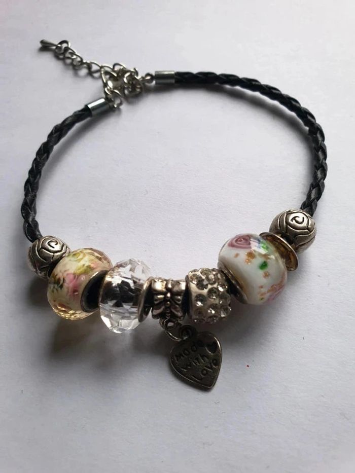 Bracelet femme avec perles BRACELET FEMME AVEC 7 PERLES ET PENDENTIFE COEUR BRACELET EN CORDON NOIR ETAT PARFAIT !