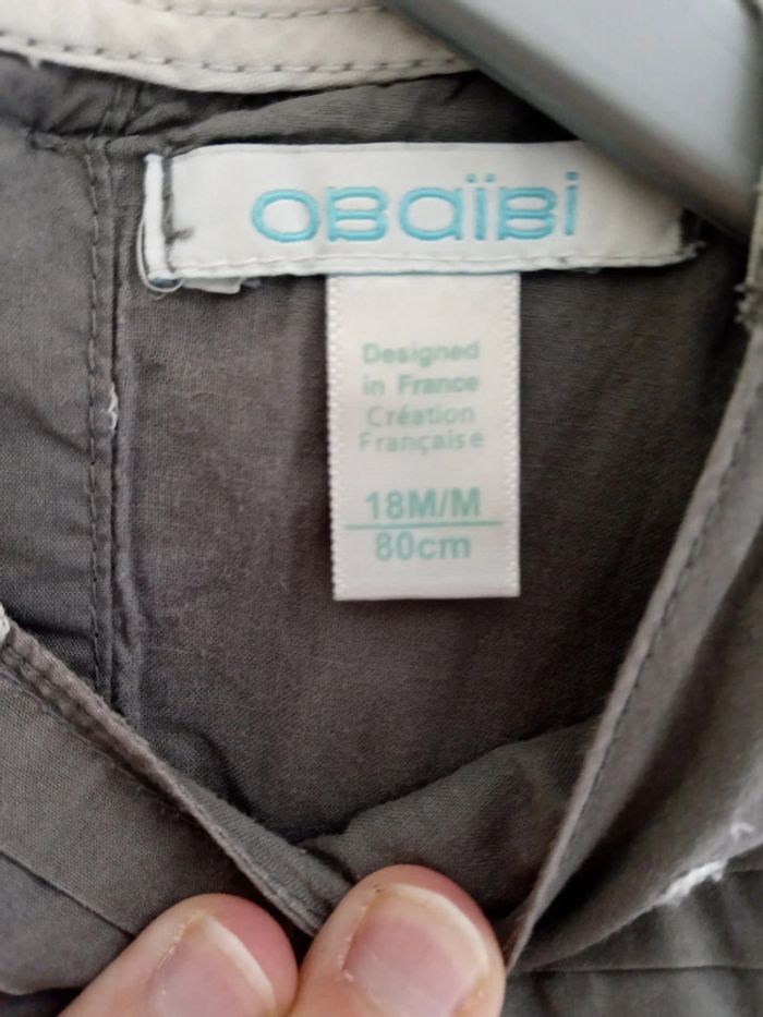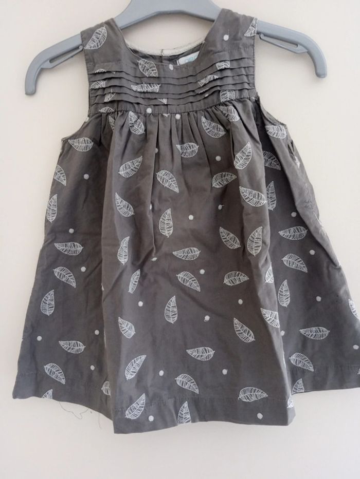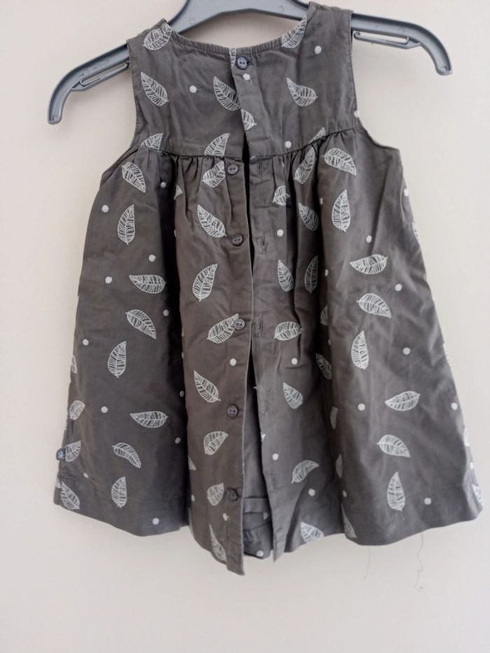 Robe courte grise avec des plumes brodées Fermeture au dos par boutons de haut en bas Une petite tache (voir photo) mais reste en excellent état Taille 18 mois #bertille0401fille18mois
