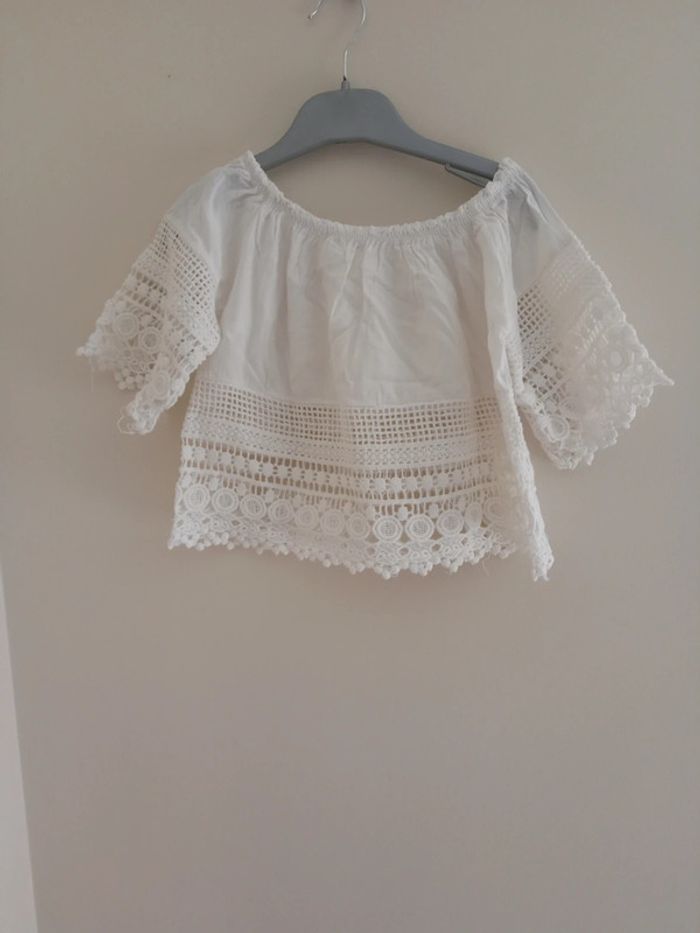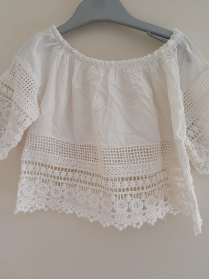 Haut blanc avec fantaisies en dentelle, se porte assez court Taille 3/4 ans #bertille0401fille3ans
