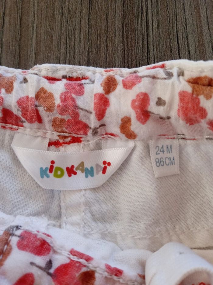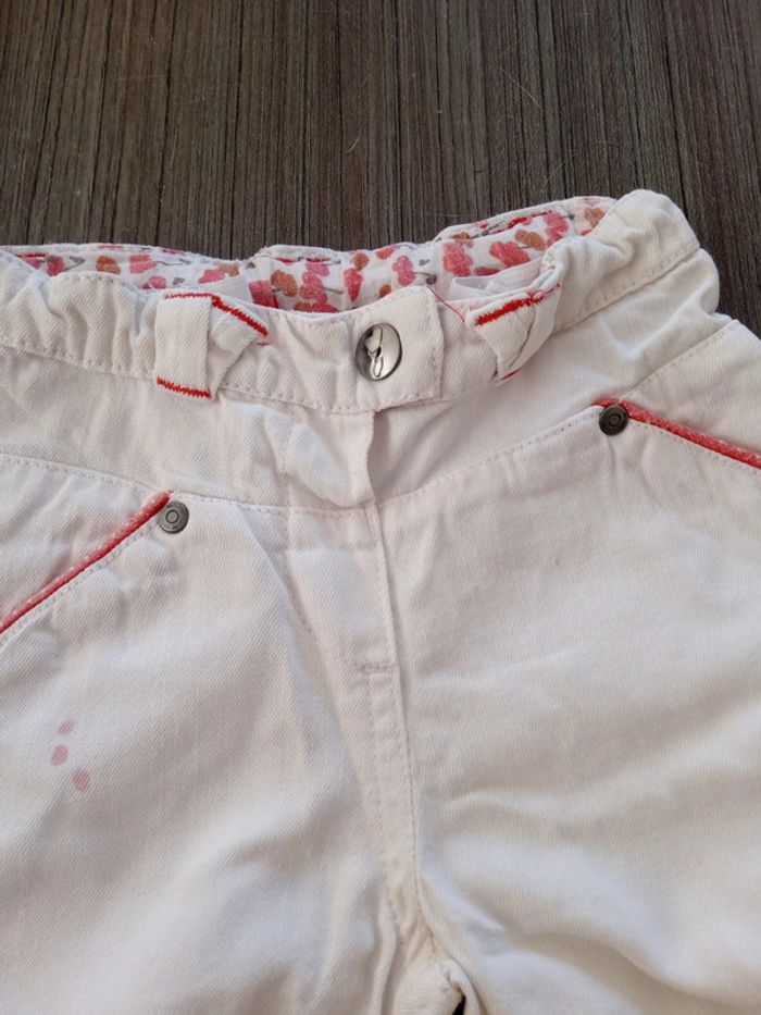 Pantacourt blanc avec fantaisies rose 3 petites taches roses (vernis à ongles) mais reste en très bon état Taille 24 mois #bertille0401fille2ans